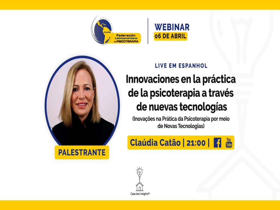 Este martes 06 de Abril, a las 21 horas Brasil, FLAPSI invita a la PhD Claudia Catao (Psicoanalista), al webinar sobre Innovación en la práctica de la psicoterapia a través de nuevas tecnologías.